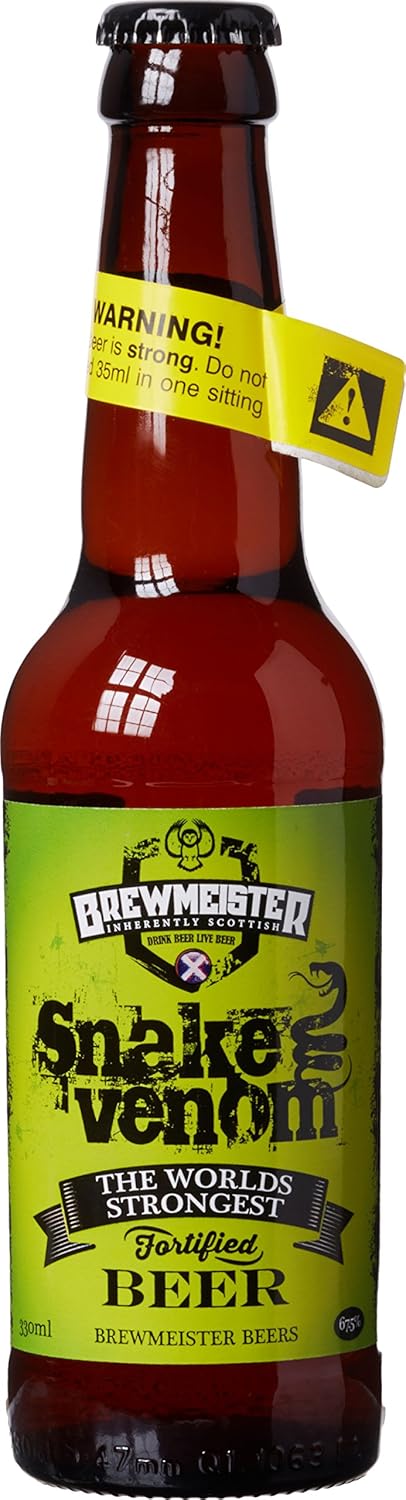 Esta cerveza es la más fuerte del mundo, incluso llega a ser más fuerte que el buen Vodka, como todos sabemos, la cerveza es de las bebidas mas consumidas en todo el mundo, pero la Snake Venom se lleva el premio a la más potente con 67.5 grados. Es de origen escocesa, y la botella cuenta con un sello de autenticidad, sin mencionar que viene con una etiqueta de advertencia; ya que una cerveza normal alcanza un máximo de 10 grados. El precio de la Snake Venom es de aproximadamente 70.30 dólares.Absenta: